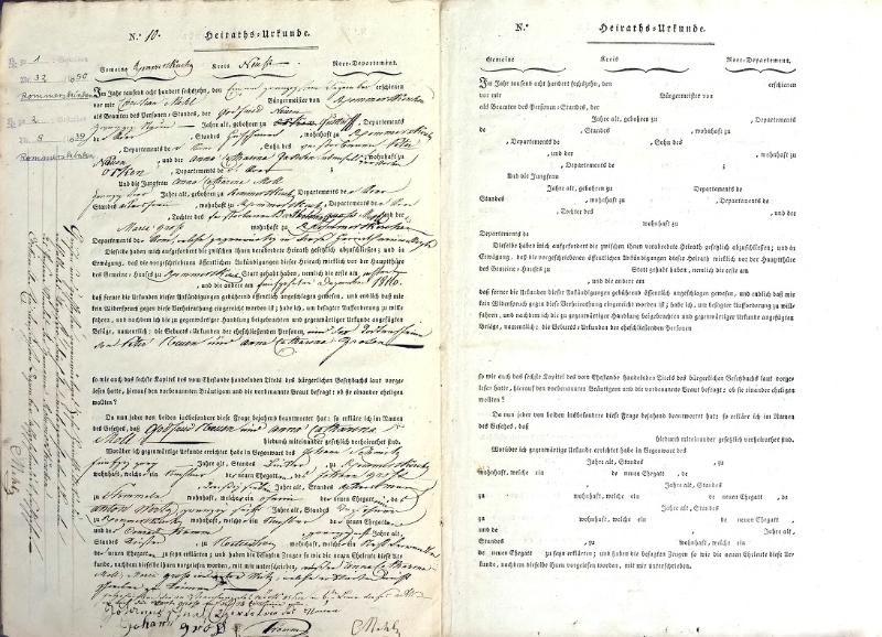 Gemeine Rommerskirchen, Register der Heirats-Urkunden von 1816