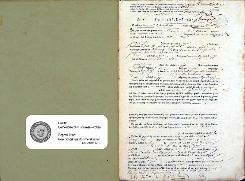 | aktuell | 19:24, 27. Okt. 2011 | 1.142 × 1.674, 9 Seiten (3,96 MB) | KlausErdmann (Diskussion • Beiträge) | {{Information |Beschreibung = ;Standesamt Rommerskirchen, Register der Heirats-Urkunden von 1819 |Quelle = Gemeindearchiv Rommerskirchen |Urheber = |Datum = 1819 |Scans = Klaus Erdmann ''(Repro |