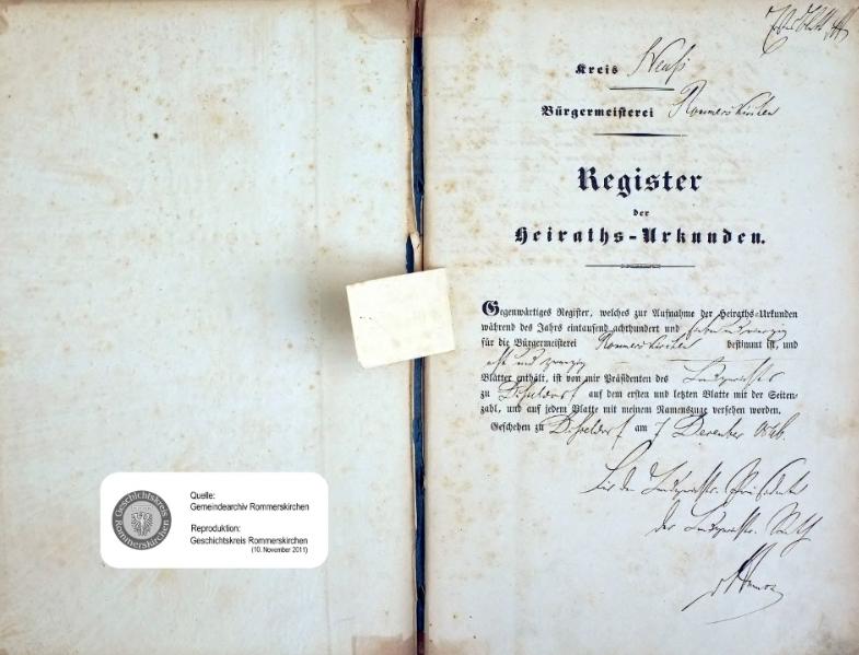 "Standesamtregister aus dem Gemeindearchiv Rommerskirchen"