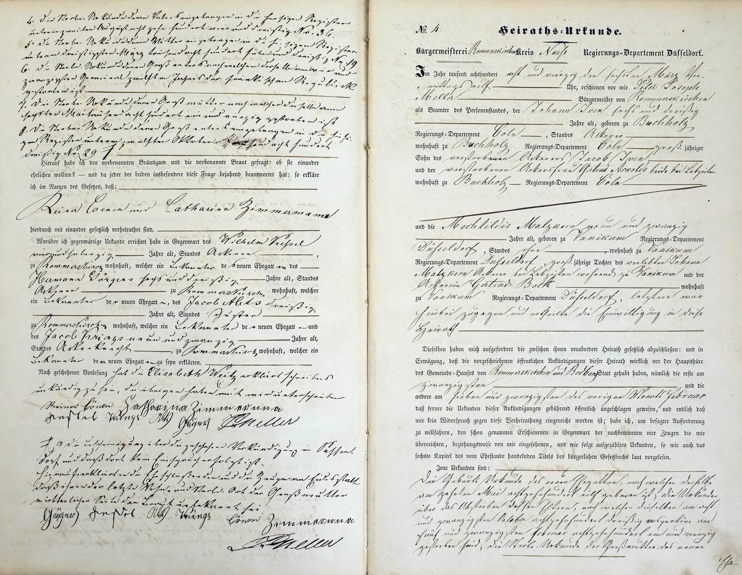 Standesamt Rommerskirchen, Register der Heirats-Urkunden für das Jahr 1848