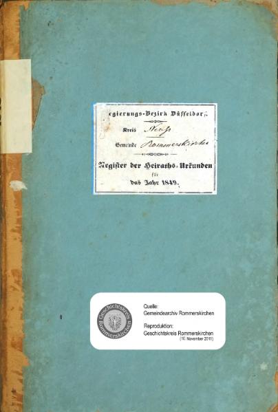 Standesamt Rommerskirchen, Register der Heirats-Urkunden für das Jahr 1849
