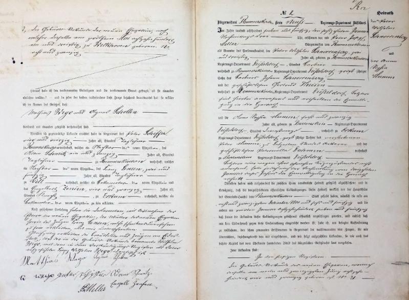 Standesamt Rommerskirchen, Register der Heirats-Urkunden für das Jahr 1857