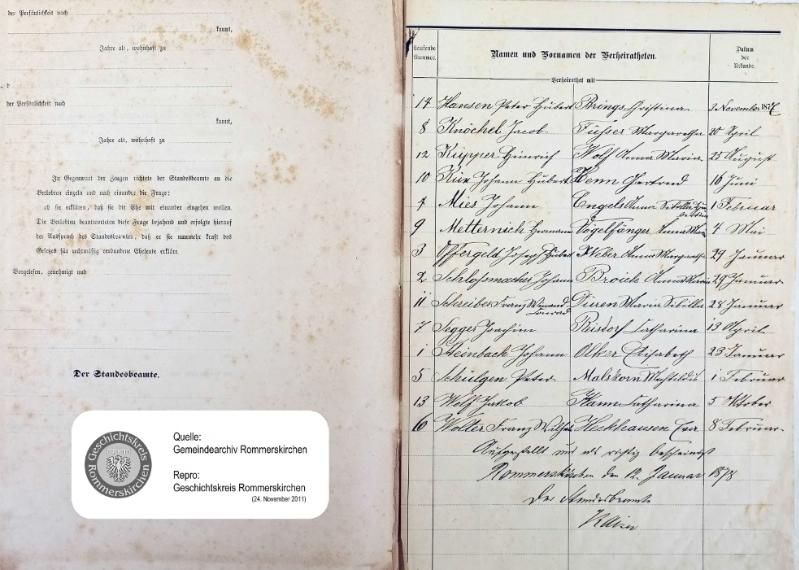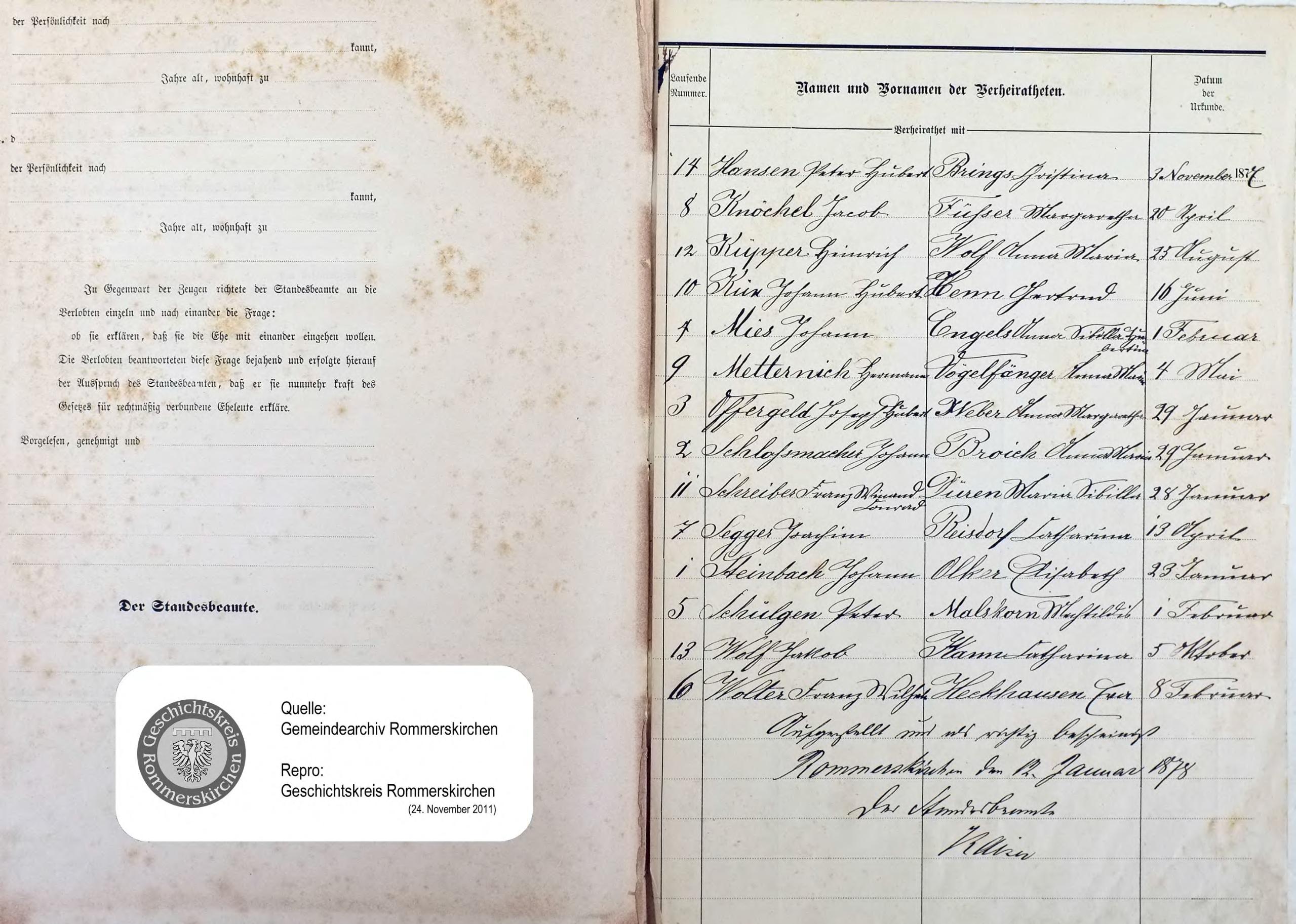 "Standesamtregister aus dem Gemeindearchiv Rommerskirchen"