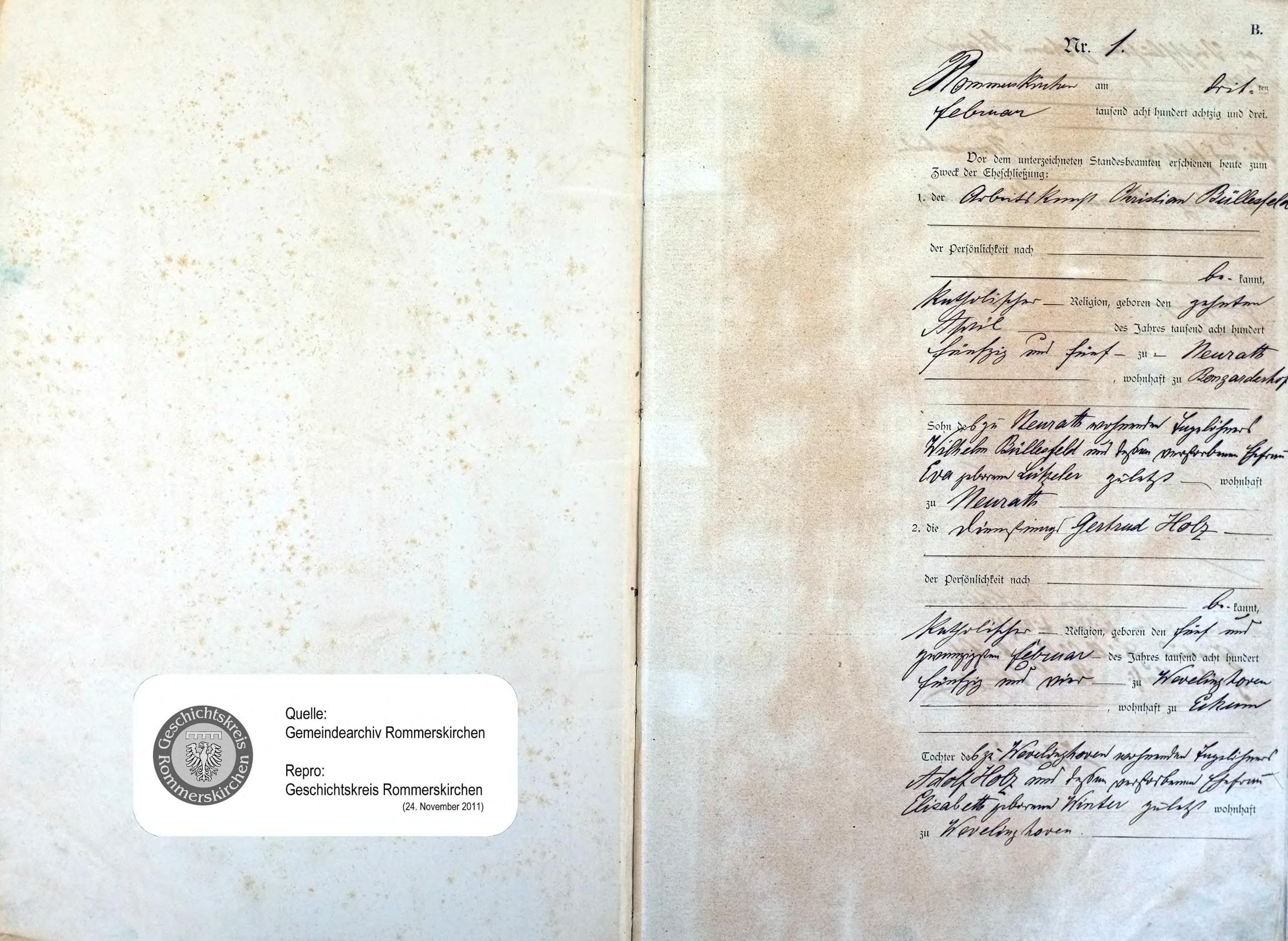 "Standesamtregister aus dem Gemeindearchiv Rommerskirchen"