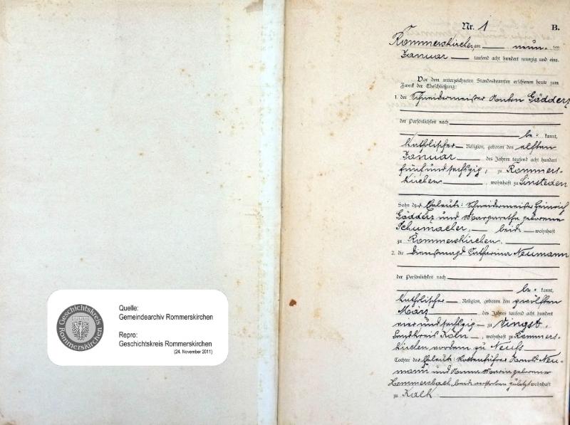 "Standesamtregister aus dem Gemeindearchiv Rommerskirchen"