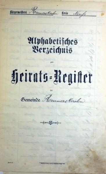 "Standesamtregister aus dem Gemeindearchiv Rommerskirchen"