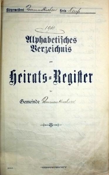 "Standesamtregister aus dem Gemeindearchiv Rommerskirchen"
