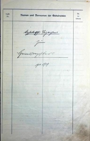 Alphabetisches Namenverzeichnis zum Heiratsregister 1919