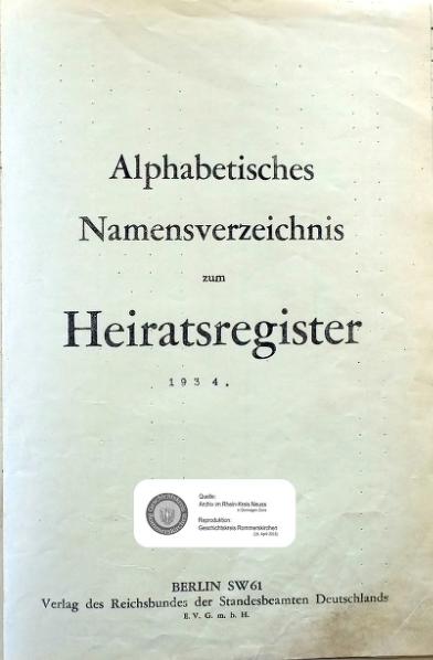 Alphabetisches Namenverzeichnis zum Heiratsregister 1934 | ||||