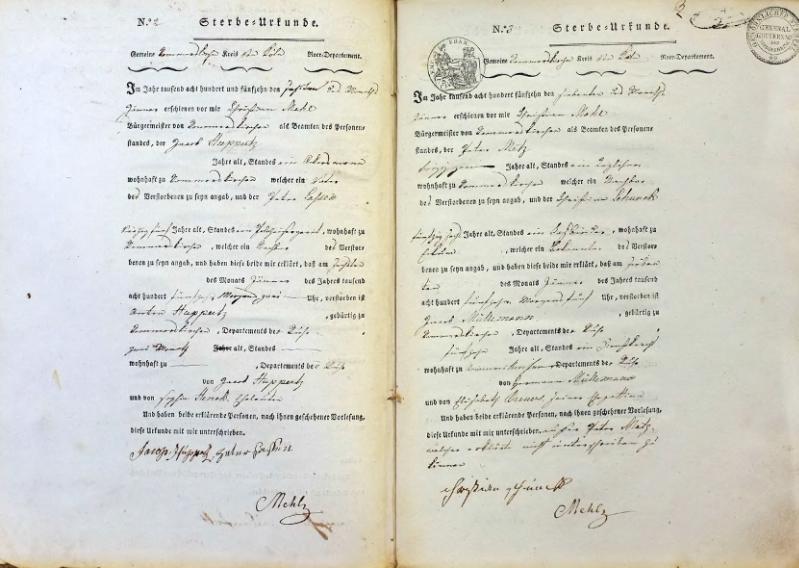 | aktuell | 13:52, 28. Dez. 2011 | 1.292 × 1.819, 23 Seiten (6,86 MB) | KlausErdmann (Diskussion • Beiträge) | {{Information |Beschreibung = ;Bürgermeisterei Rommerskirchen, Sterbe-Urkunden 1815 |Quelle = Gemeindearchiv Rommerskirchen |Urheber = |Datum = 1815 |Scans = Klaus Erdmann ''(Repro: 28. Dezemb |