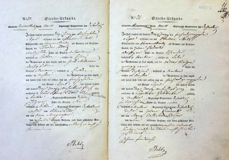 | aktuell | 11:39, 29. Dez. 2011 | 1.353 × 1.820, 26 Seiten (9,08 MB) | KlausErdmann (Diskussion • Beiträge) | {{Information |Beschreibung = ;Bürgermeisterei Rommerskirchen, Sterbe-Urkunden 1823 |Quelle = Gemeindearchiv Rommerskirchen |Urheber = |Datum = 1823 |Scans = Klaus Erdmann ''(Repro: 28. Dezemb |