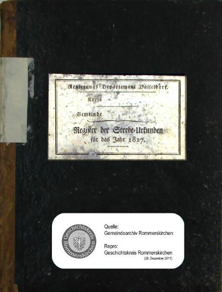 Bürgermeisterei Rommerskirchen, Sterbe-Urkunden 1827