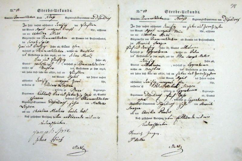 | aktuell | 09:08, 30. Dez. 2011 | 1.396 × 1.792, 20 Seiten (6,07 MB) | KlausErdmann (Diskussion • Beiträge) | {{Information |Beschreibung = ;Bürgermeisterei Rommerskirchen, Sterbe-Urkunden 1830 |Quelle = Gemeindearchiv Rommerskirchen |Urheber = |Datum = 1830 |Scans = Klaus Erdmann ''(Repro: 28. Dezemb |