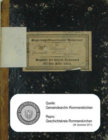 Bürgermeisterei Rommerskirchen, Sterbe-Urkunden 1831