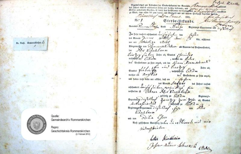 | aktuell | 12:43, 4. Feb. 2012 | 1.310 × 1.747, 31 Seiten (9,8 MB) | KlausErdmann (Diskussion • Beiträge) | {{Information |Beschreibung = ;Bürgermeisterei Rommerskirchen:Register der Sterbe-Urkunden für das Jahr 1837 |Quelle = Gemeindearchiv Rommerskirchen |Urheber = |Datum = 1837 |Scans = [[User:KlausErdmann|Klaus Erdm |