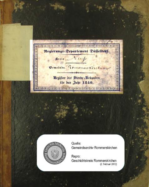 | aktuell | 14:03, 4. Feb. 2012 | 1.359 × 1.713, 31 Seiten (9,82 MB) | KlausErdmann (Diskussion • Beiträge) | {{Information |Beschreibung = ;Bürgermeisterei Rommerskirchen:Register der Sterbe-Urkunden für das Jahr 1840 |Quelle = Gemeindearchiv Rommerskirchen |Urheber = |Datum = 1840 |Scans = [[User:KlausErdmann|Klaus Erdm |