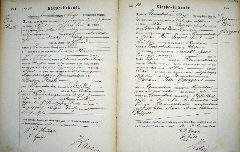 Standesamt Rommerskirchen, Register der Sterbe-Urkunden für das Jahr 1874
