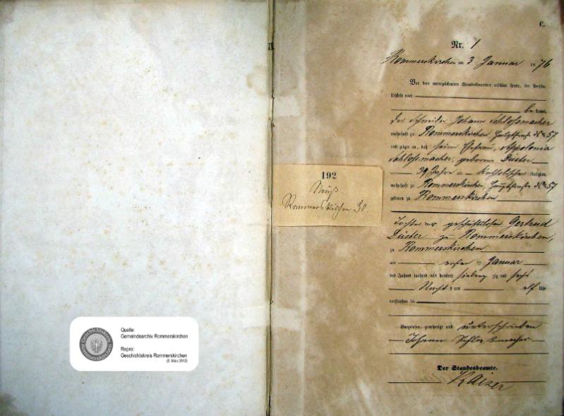 "Standesamtregister aus dem Gemeindearchiv Rommerskirchen"