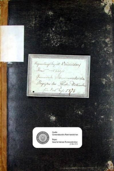| aktuell | 07:53, 13. Mär. 2012 | 1.267 × 1.910, 23 Seiten (5,58 MB) | KlausErdmann (Diskussion • Beiträge) | {{Information |Beschreibung = ;Standesamt Rommerskirchen, Register der Sterbe-Urkunden für das Jahr 1878 |Quelle = Gemeindearchiv Rommerskirchen |Urheber = |Datum = 1878 |Scans = Klaus Erdmann |