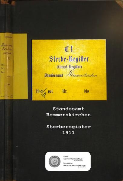 | aktuell | 12:16, 29. Jan. 2013 | 1.629 × 2.392, 21 Seiten (6,34 MB) | KlausErdmann (Diskussion • Beiträge) | {{Information |Beschreibung = ;Standesamt Rommerskirchen, Sterberegister von 1911 |Quelle = Archiv im Rhein-Kreis Neuss |Urheber = |Datum = 1911 |Scans = Klaus Erdmann ''(Repro: 24. |
