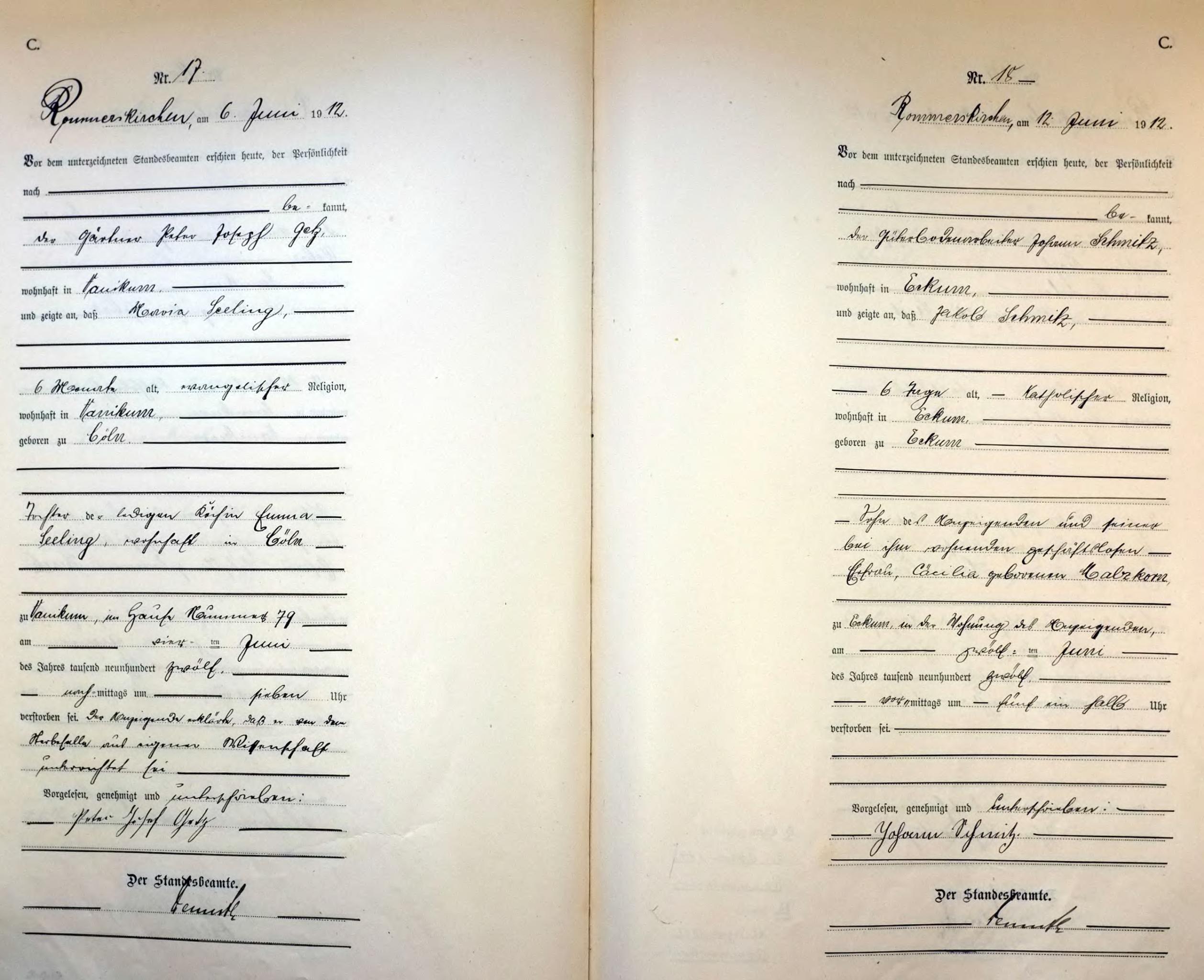 "Standesamtregister aus dem Gemeindearchiv Rommerskirchen"
