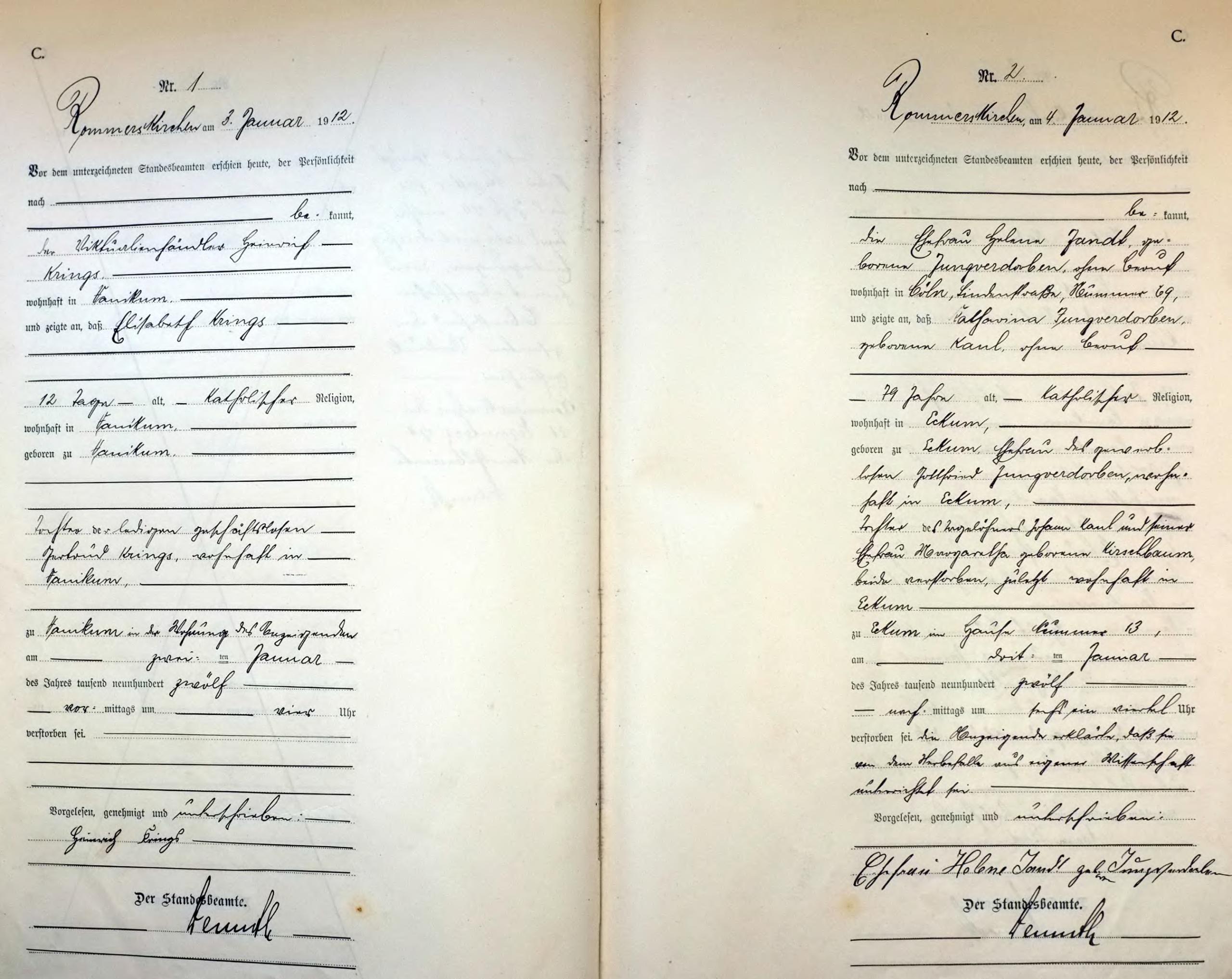 "Standesamtregister aus dem Gemeindearchiv Rommerskirchen"