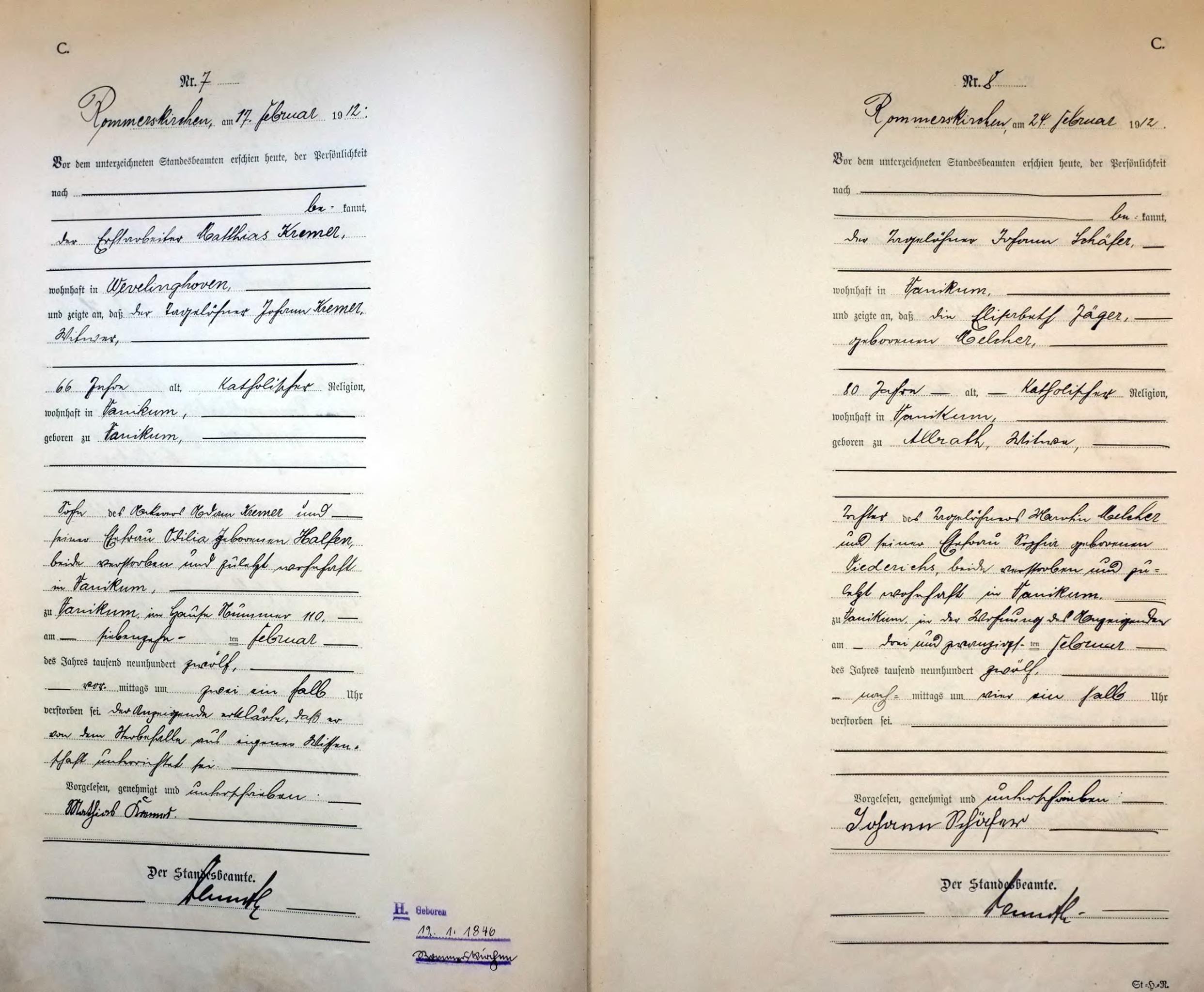 "Standesamtregister aus dem Gemeindearchiv Rommerskirchen"
