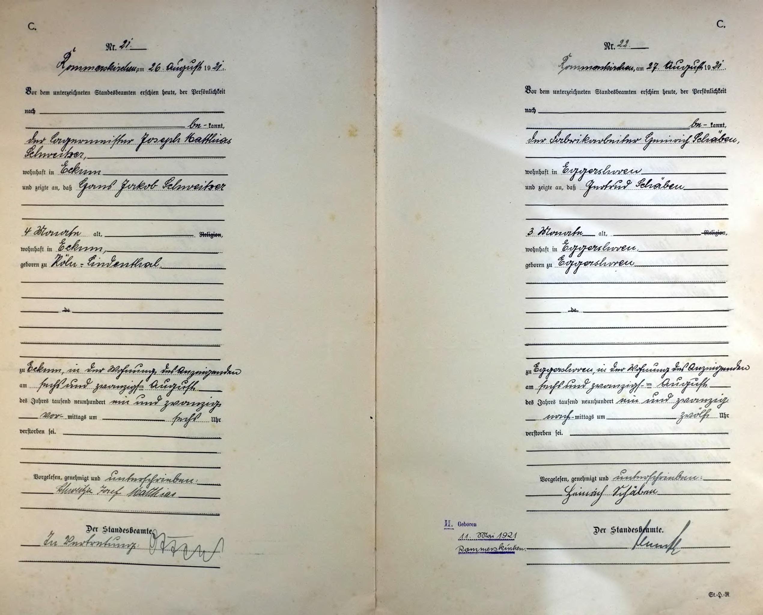 "Standesamtregister aus dem Gemeindearchiv Rommerskirchen"