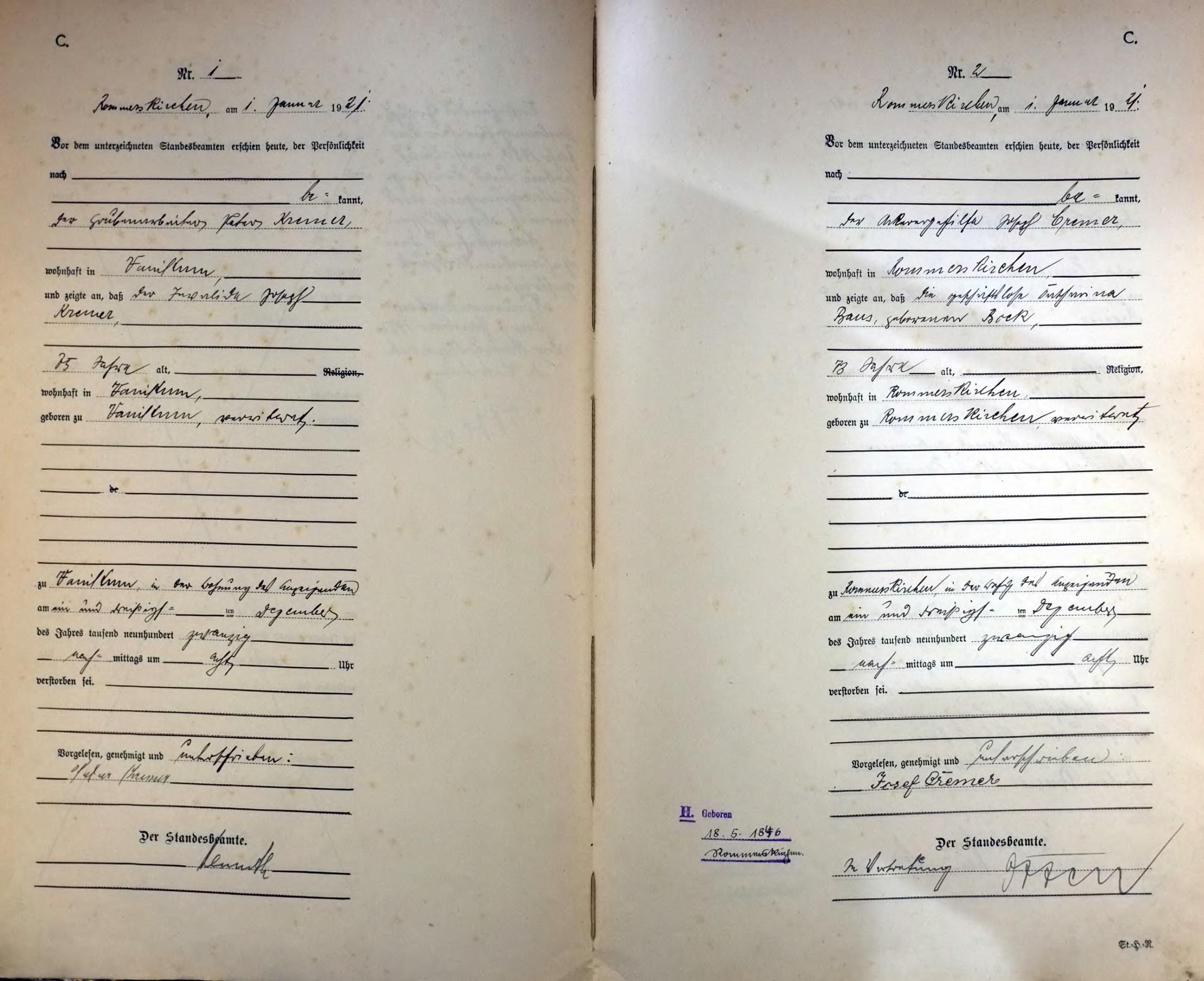 "Standesamtregister aus dem Gemeindearchiv Rommerskirchen"