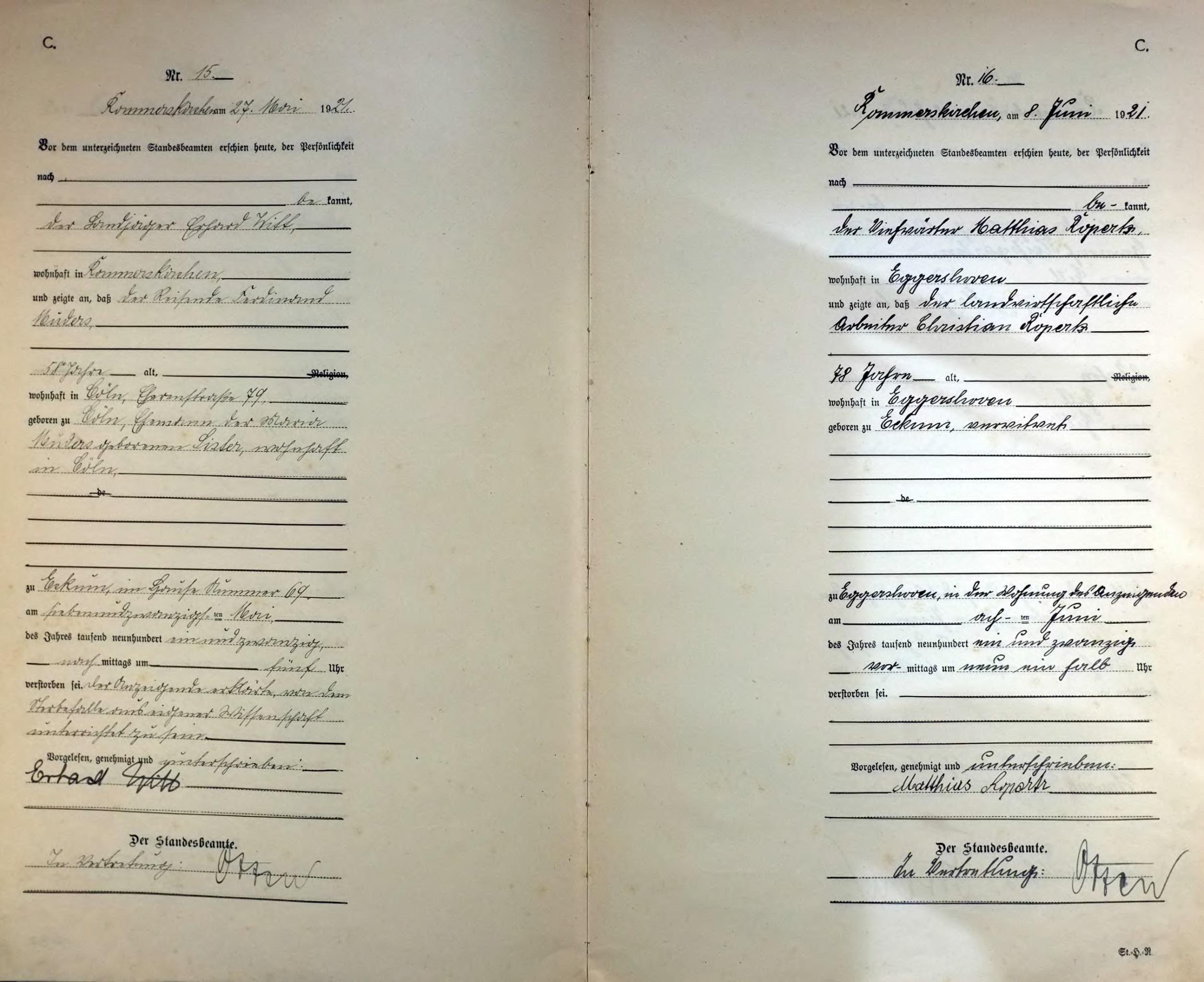 "Standesamtregister aus dem Gemeindearchiv Rommerskirchen"