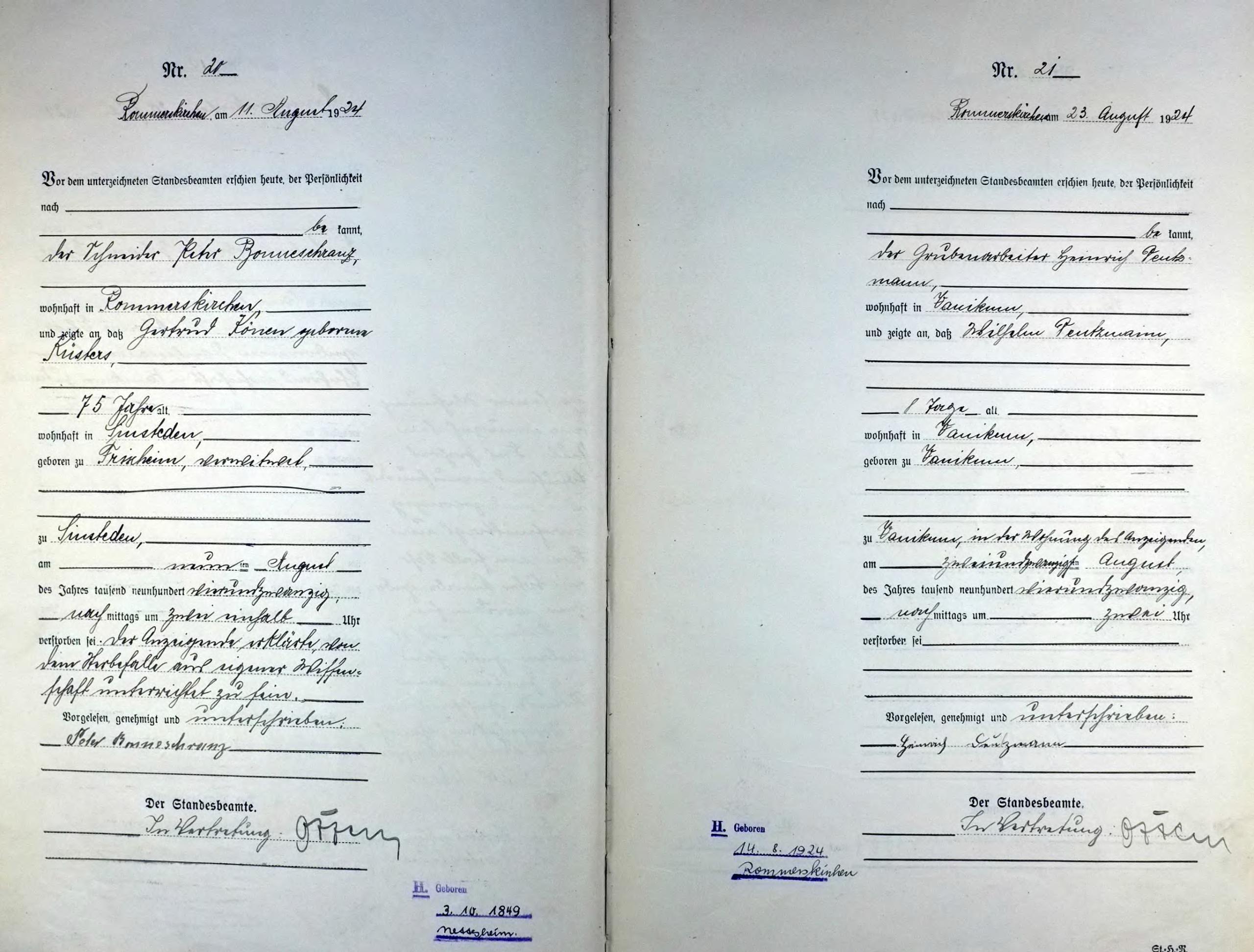"Standesamtregister aus dem Gemeindearchiv Rommerskirchen"