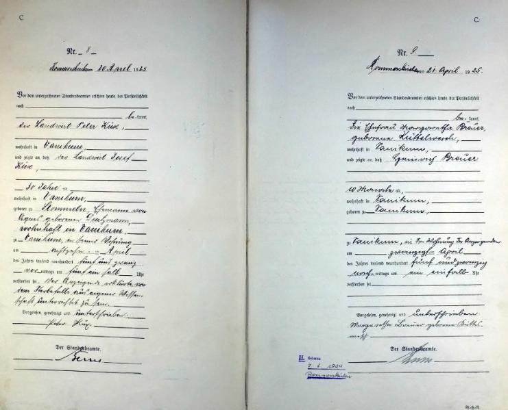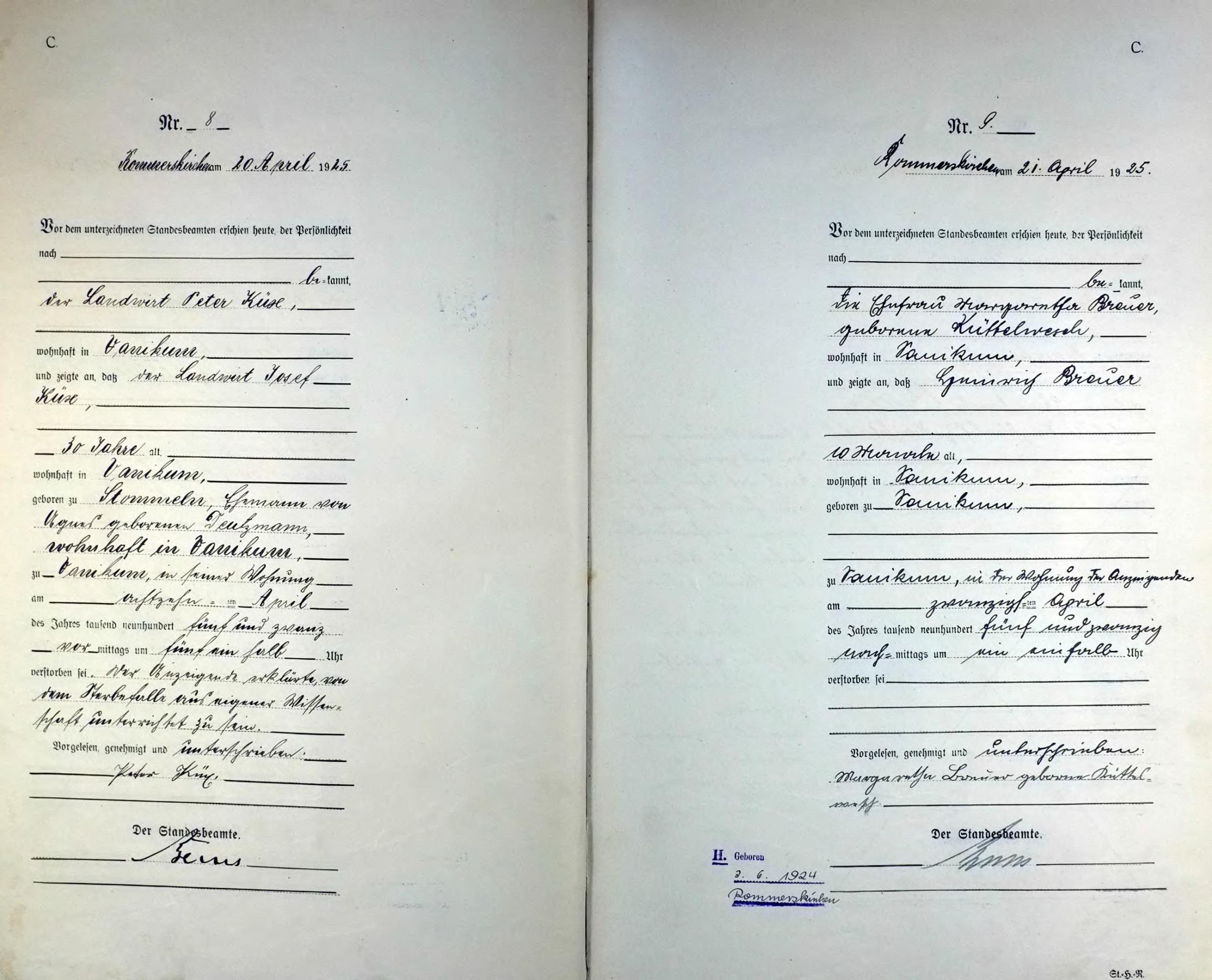 "Standesamtregister aus dem Gemeindearchiv Rommerskirchen"
