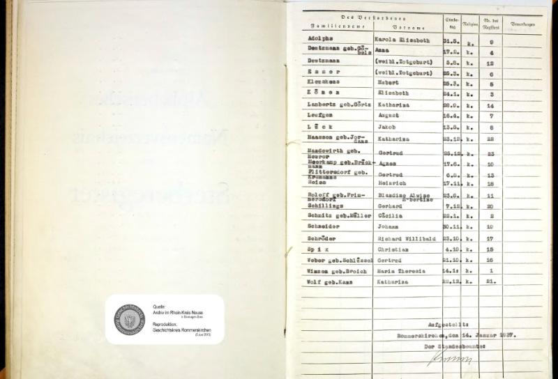 "Standesamtregister aus dem Gemeindearchiv Rommerskirchen"