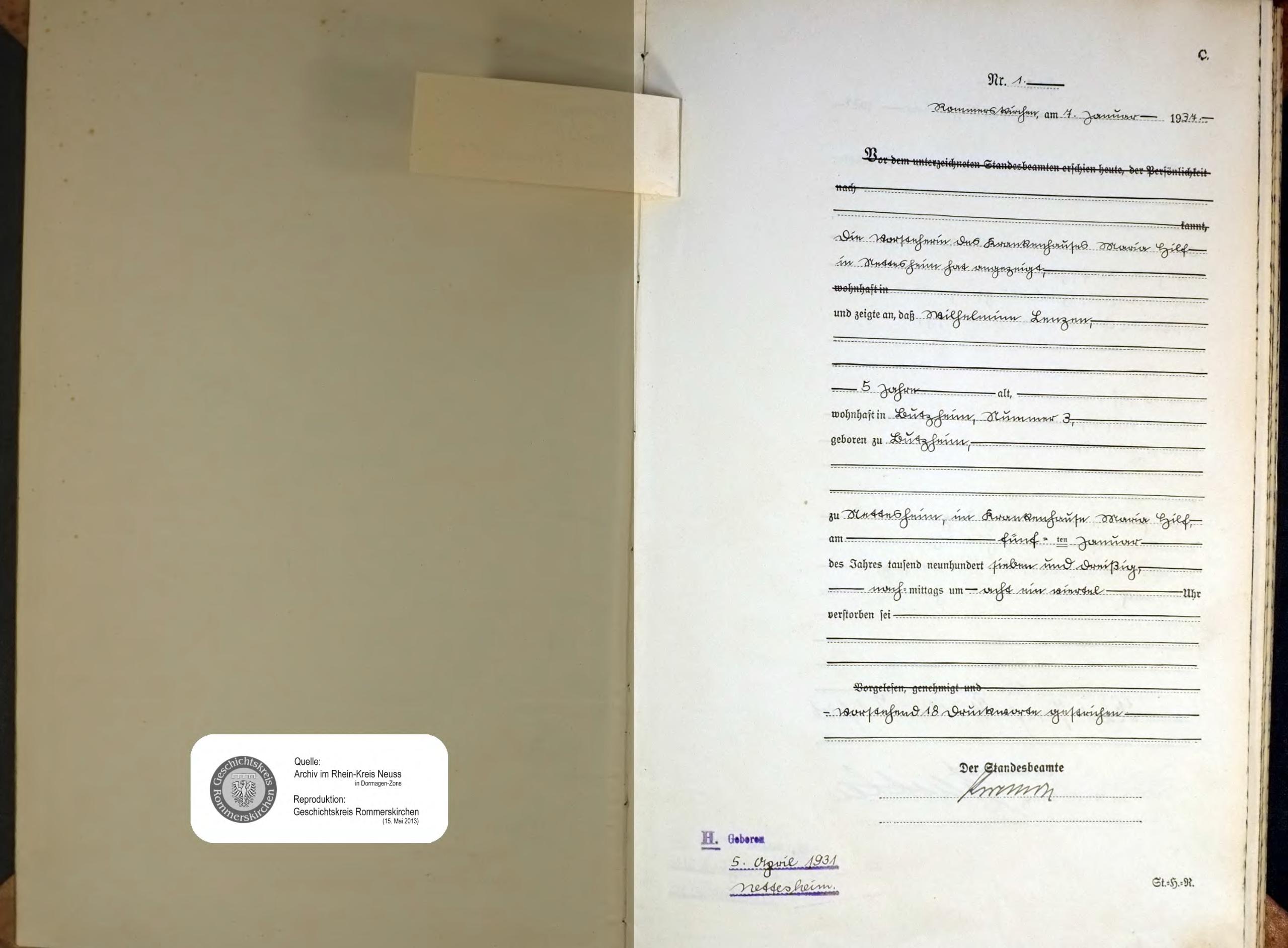 "Standesamtregister aus dem Gemeindearchiv Rommerskirchen"