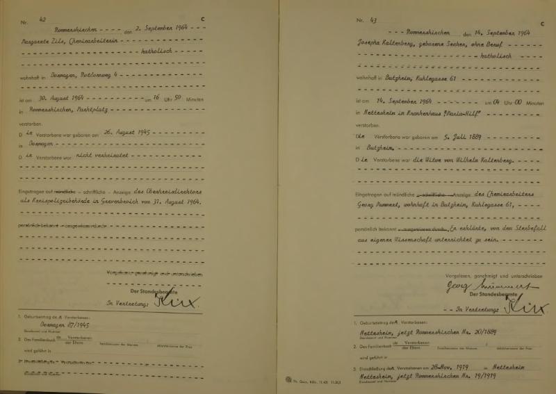 Standesamt Rommerskirchen, Sterberegister von 1964