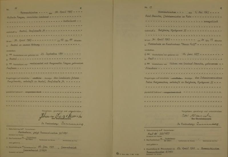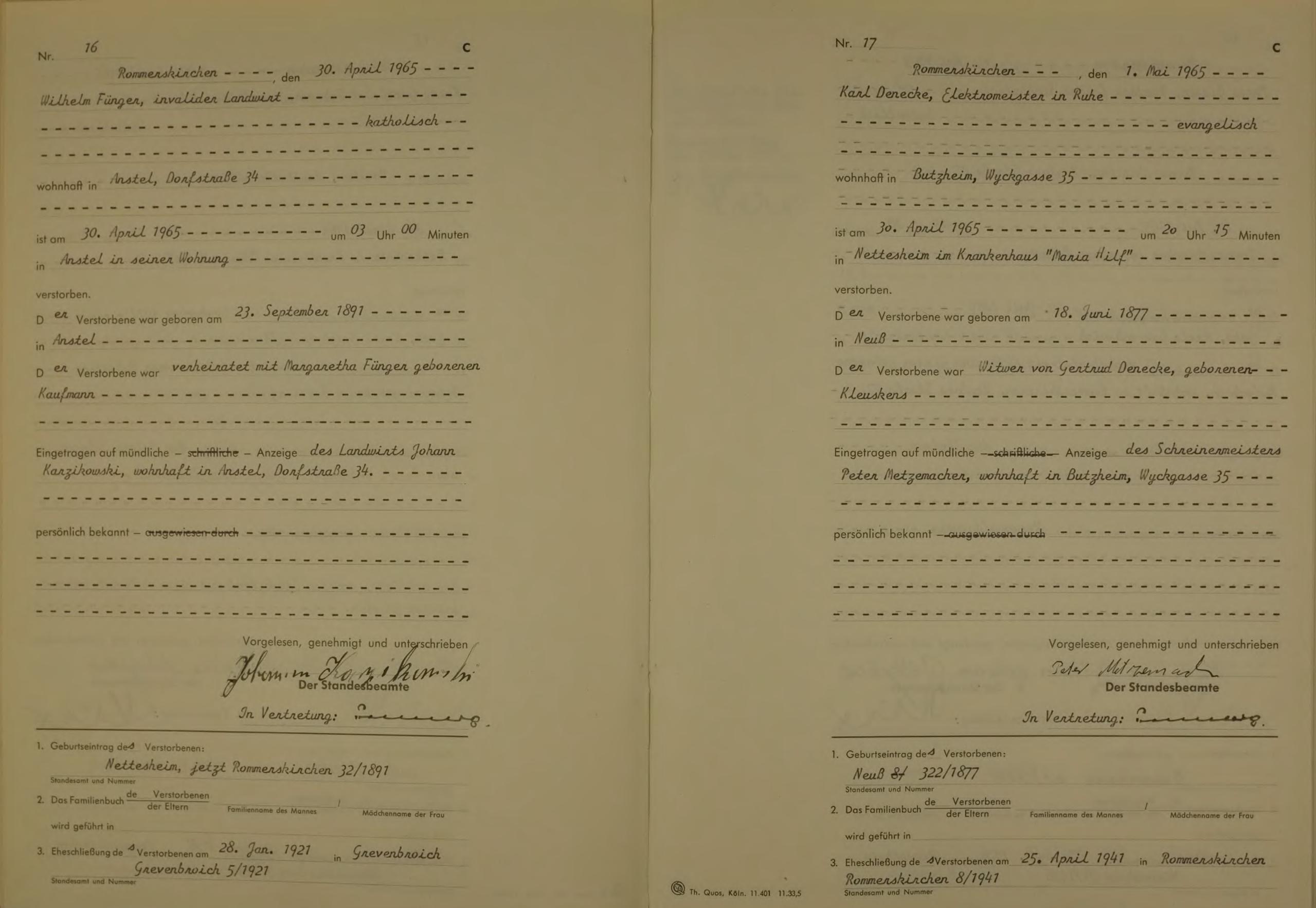 "Standesamtregister aus dem Gemeindearchiv Rommerskirchen"