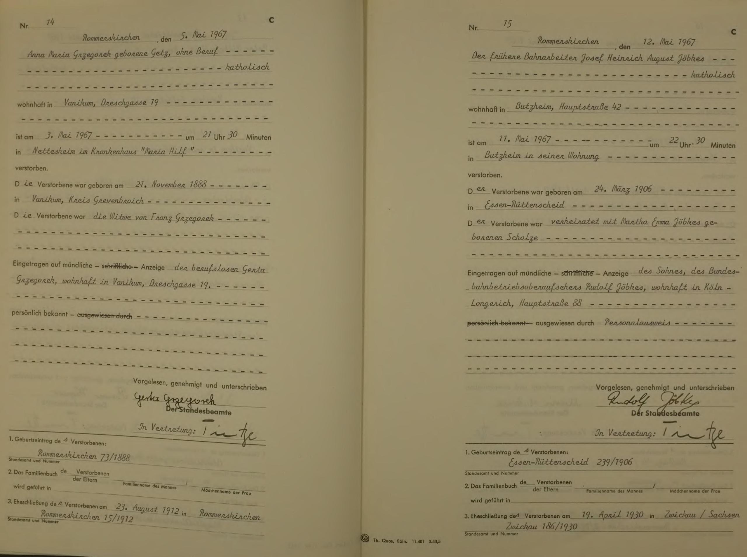 "Standesamtregister aus dem Gemeindearchiv Rommerskirchen"