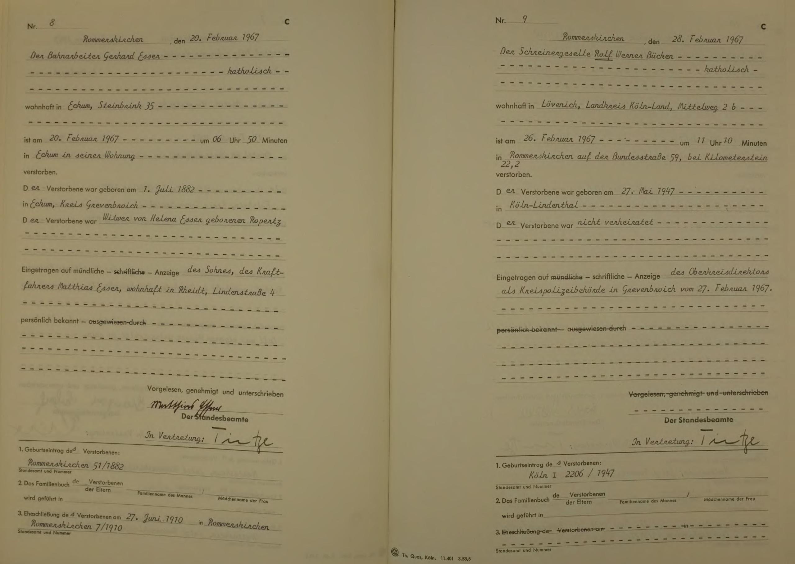 "Standesamtregister aus dem Gemeindearchiv Rommerskirchen"