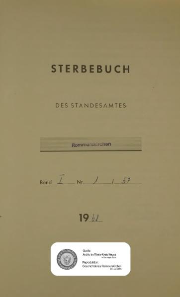 "Standesamtregister aus dem Gemeindearchiv Rommerskirchen"