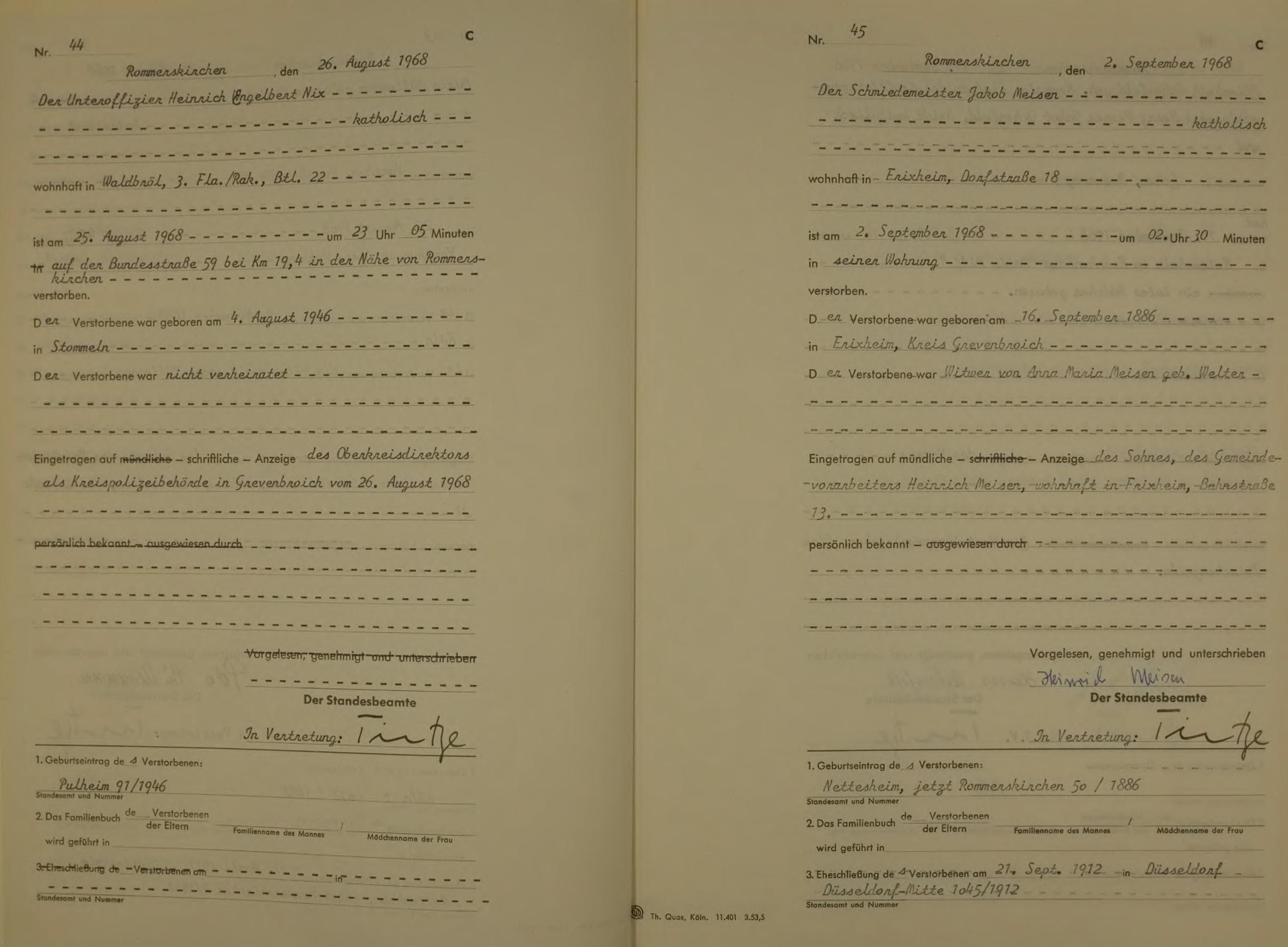 "Standesamtregister aus dem Gemeindearchiv Rommerskirchen"