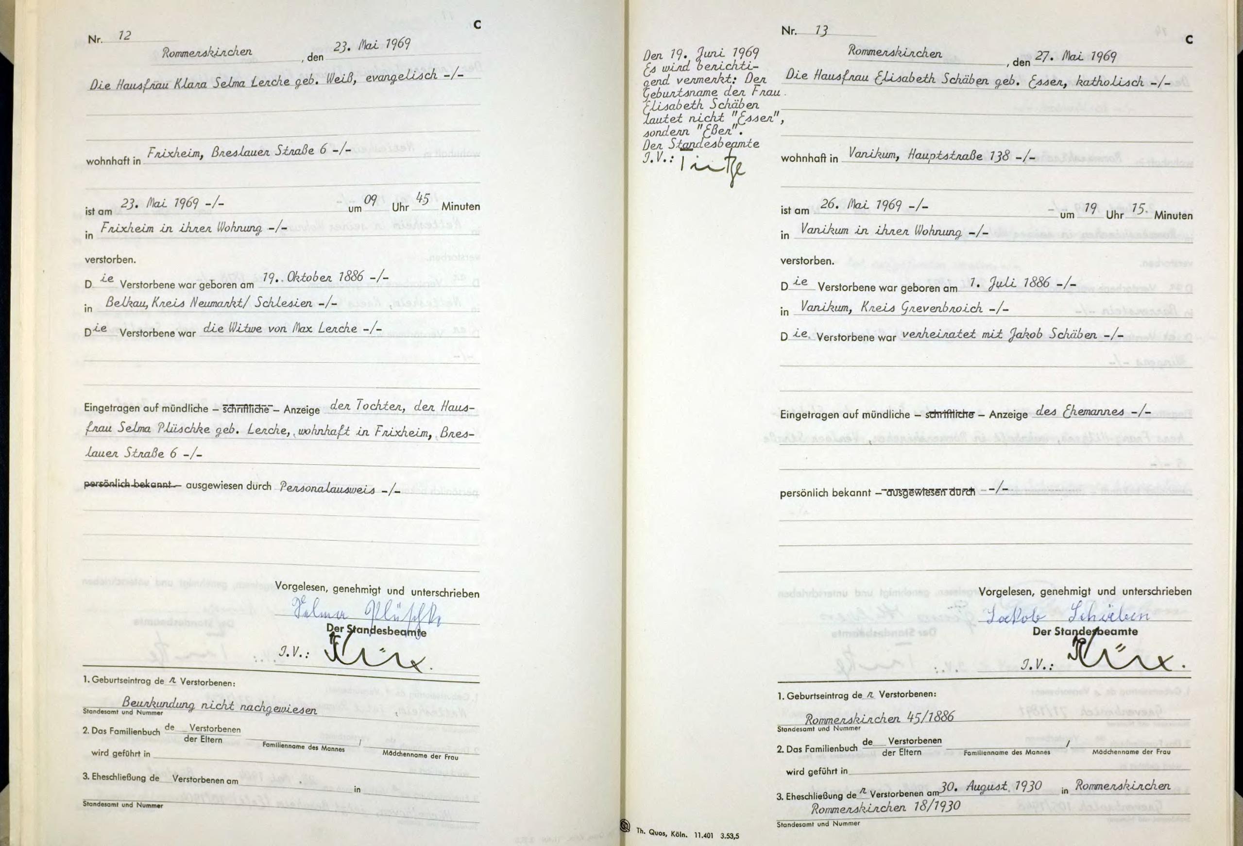 | aktuell | 12:10, 20. Jun. 2013 | 1.747 × 2.261, 24 Seiten (6,11 MB) | KlausErdmann (Diskussion • Beiträge) | {{Information |Beschreibung = ;Standesamt Rommerskirchen, Sterberegister von 1969 |Quelle = Archiv im Rhein-Kreis Neuss |Urheber = |Datum = 1969 |Scans = Klaus Erdmann ''(Repro: 20. |