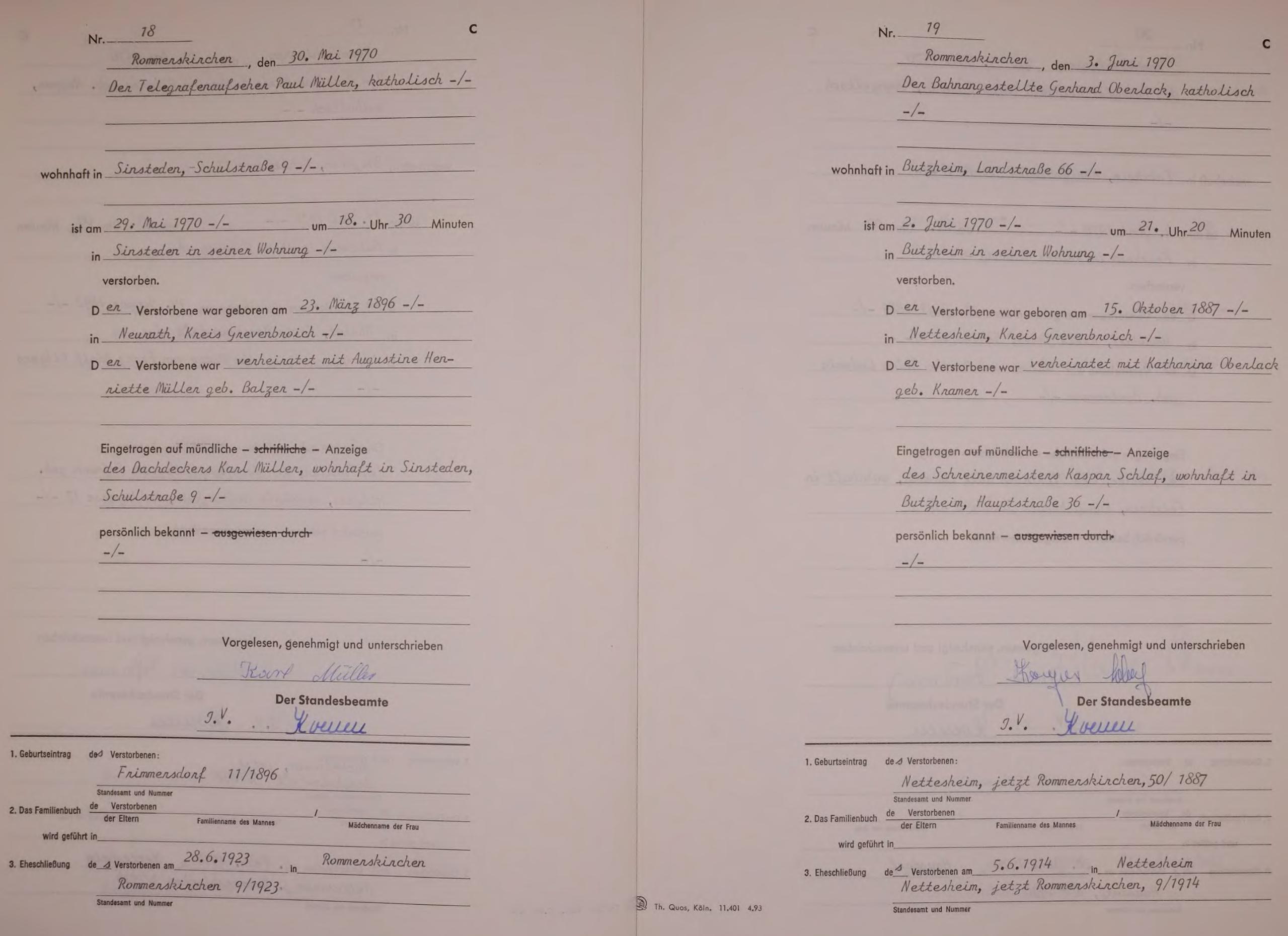 "Standesamtregister aus dem Gemeindearchiv Rommerskirchen"