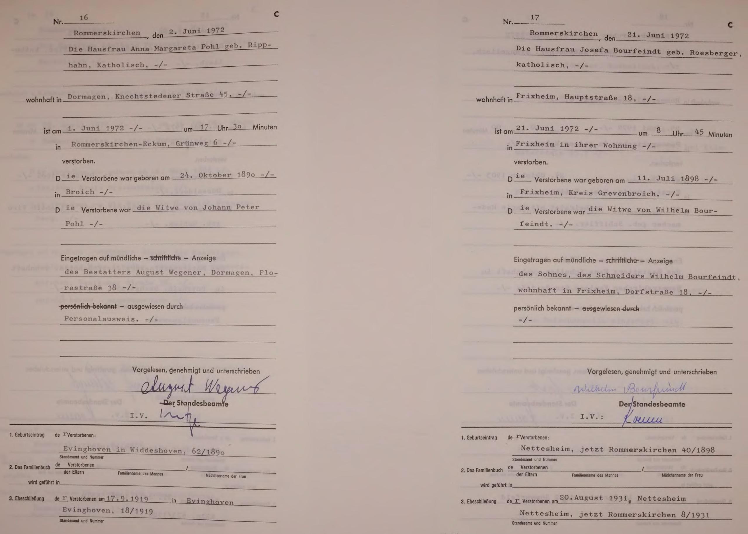 "Standesamtregister aus dem Gemeindearchiv Rommerskirchen"