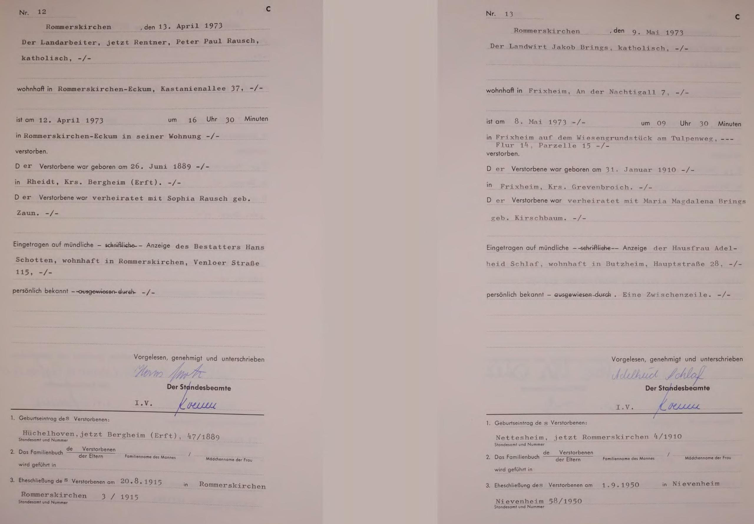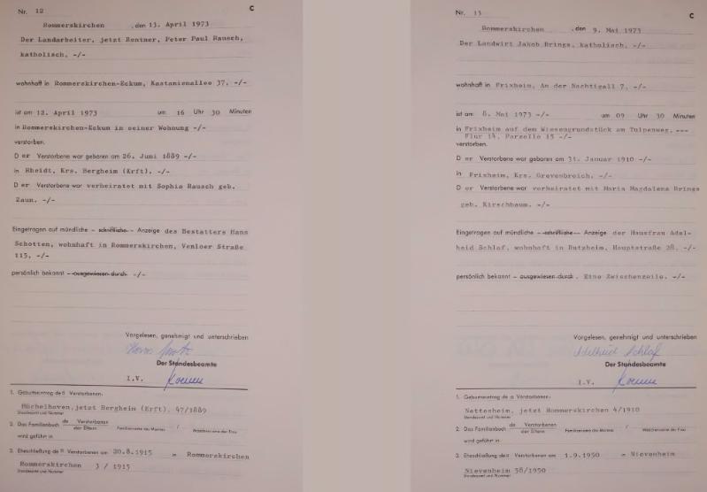 "Standesamtregister aus dem Gemeindearchiv Rommerskirchen"