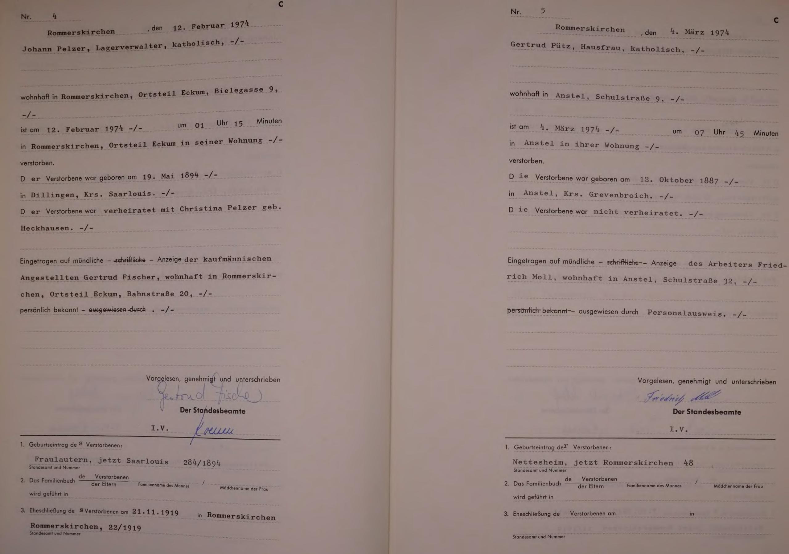 | aktuell | 18:03, 20. Jun. 2013 | 1.450 × 2.100, 20 Seiten (2,98 MB) | KlausErdmann (Diskussion • Beiträge) | {{Information |Beschreibung = ;Standesamt Rommerskirchen, Sterberegister von 1974 |Quelle = Archiv im Rhein-Kreis Neuss |Urheber = |Datum = 1974 |Scans = Bernhard Erdmann ''(Repro: 20. Juni 2013)'' |Gene |