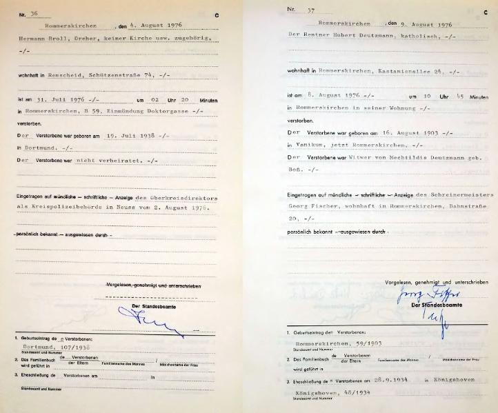 "Standesamtregister aus dem Gemeindearchiv Rommerskirchen"