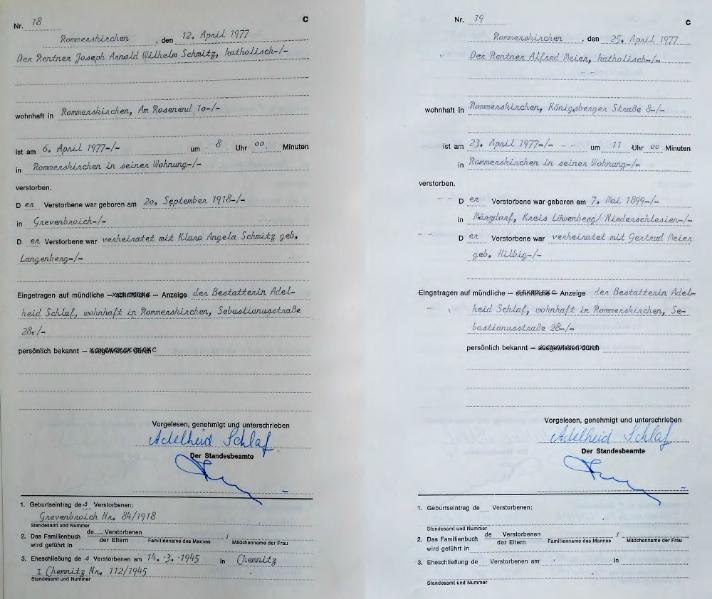 | aktuell | 11:05, 10. Jul. 2013 | 1.200 × 1.651, 34 Seiten (7,84 MB) | KlausErdmann (Diskussion • Beiträge) | {{Information |Beschreibung = ;Standesamt Rommerskirchen, Sterberegister von 1977 |Quelle = Archiv im Rhein-Kreis Neuss |Urheber = |Datum = 1977 |Scans = Bernhard Erdmann ''(Repro: 9. Juli 2013)'' |Genehm |