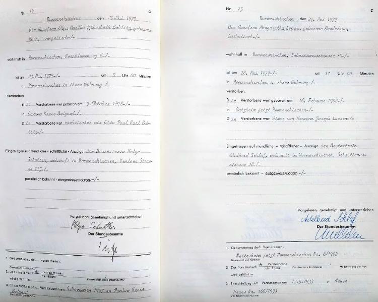 | aktuell | 11:24, 10. Jul. 2013 | 2.455 × 3.424, 27 Seiten (7,02 MB) | KlausErdmann (Diskussion • Beiträge) | {{Information |Beschreibung = ;Standesamt Rommerskirchen, Sterberegister von 1979 |Quelle = Archiv im Rhein-Kreis Neuss |Urheber = |Datum = 1979 |Scans = K. Erdmann ''(Repro: 9. Juli 2013)'' |Genehmigung |