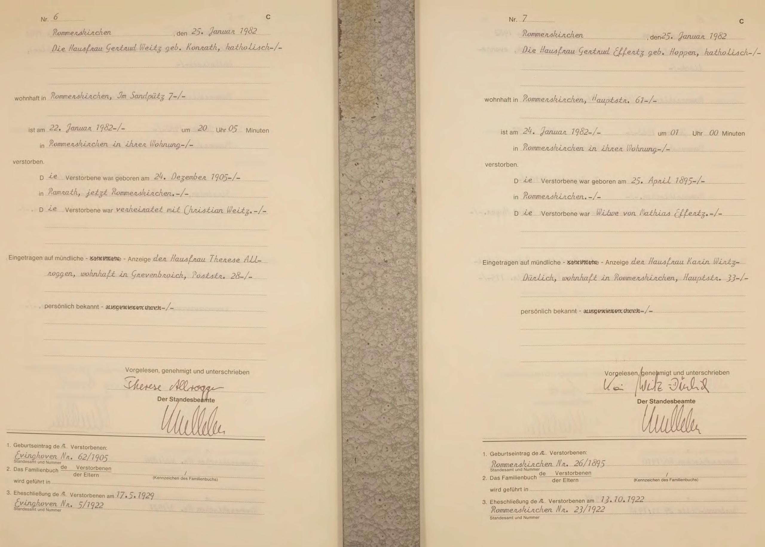 "Standesamtregister aus dem Gemeindearchiv Rommerskirchen"