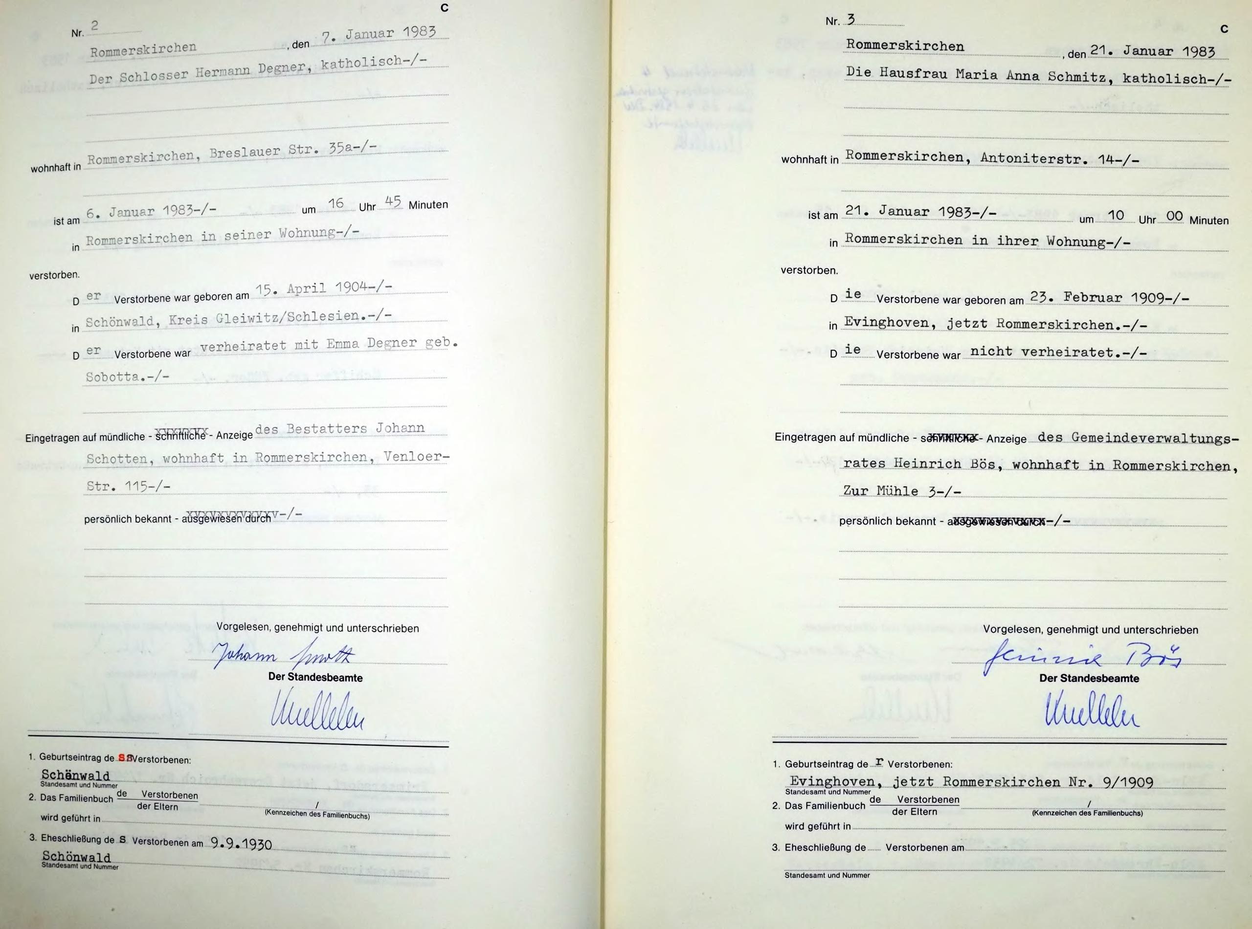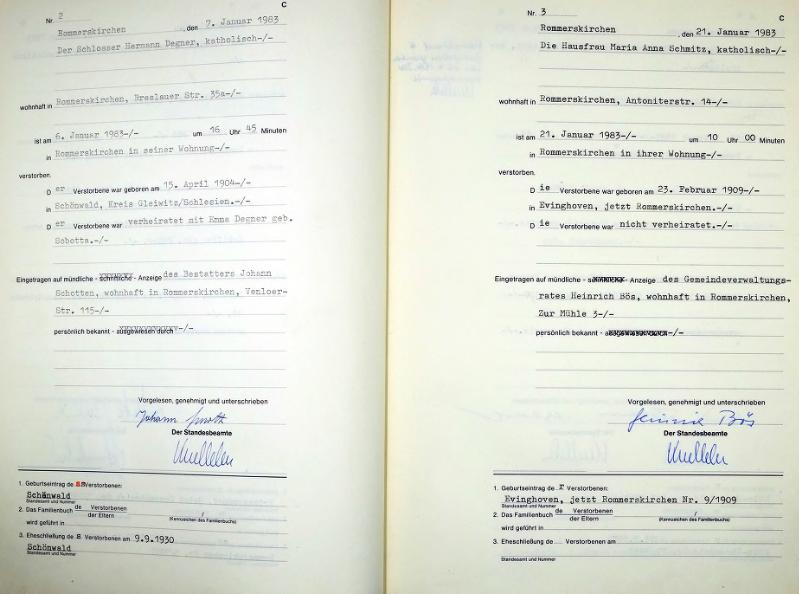 "Standesamtregister aus dem Gemeindearchiv Rommerskirchen"